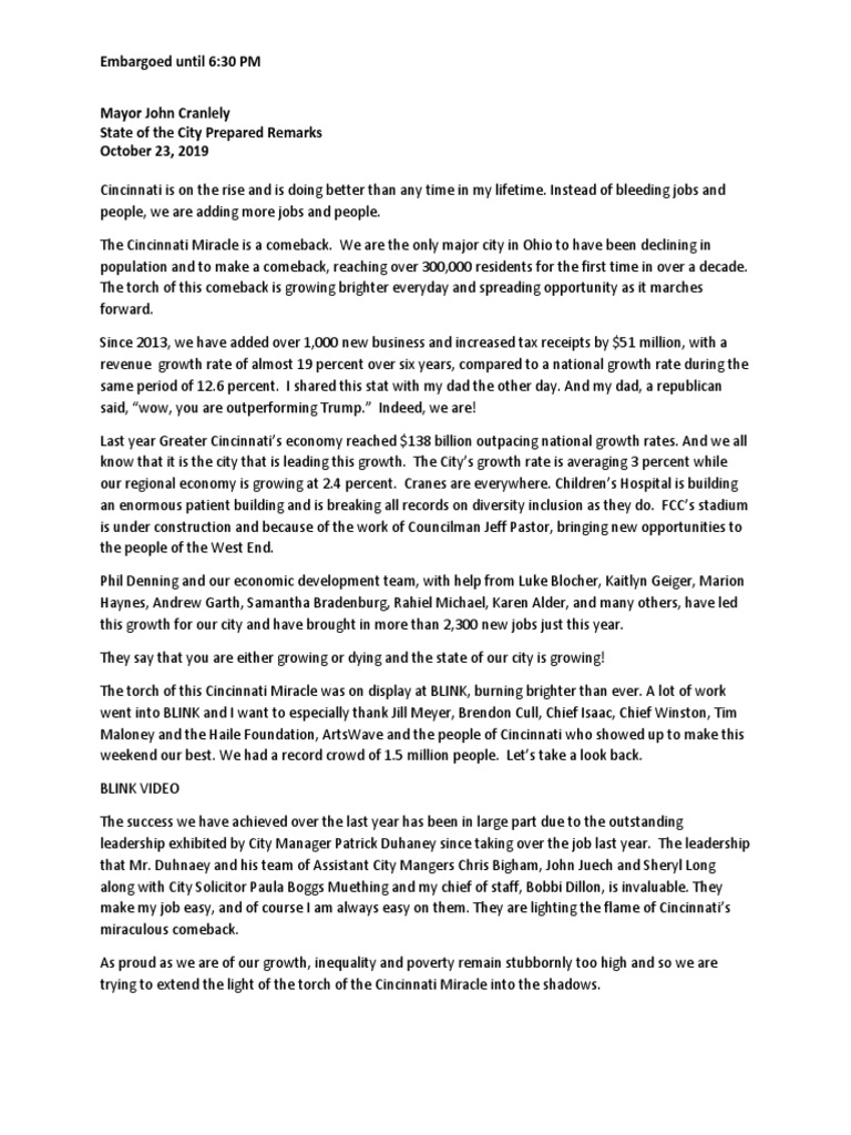 John Cranley S 2019 State Of The City Pdf Poverty Poverty Homelessness